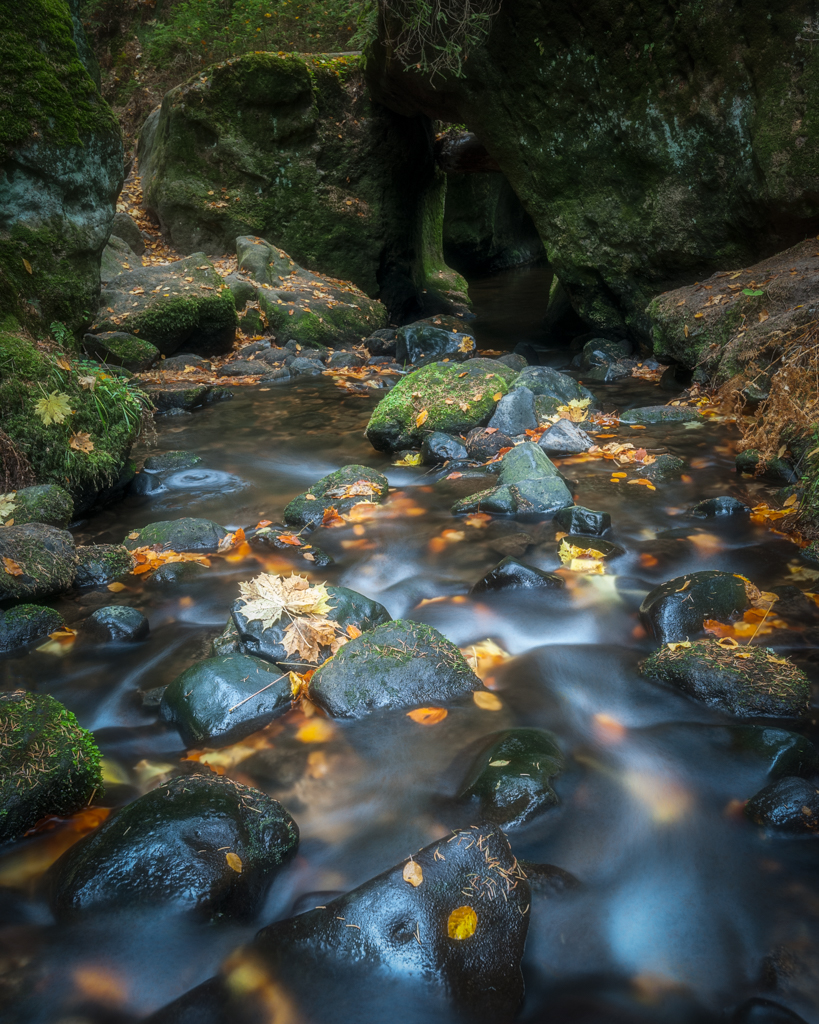 Už při příjezdu na parkoviště jsem tušil, že nebudu sám. Parkoviště bylo úplně plné. Pro mě nejhezčí místo na Křinici je v téhle části Pod praporkem. Obavy se vyplnily. Na padesáti metrech říčky, kde jsem chtěl fotit, bylo rozestavených pět fotografů a všichni si navzájem překáželi. Paráda, takže jsem si musel počkat, ale nakonec jsem i tak docela spokojený. Odcházel jsem sám už za tmy. I když je Křinice říčka, letos v ní nebylo víc vody než v malém potoce. Tenhle rok jsem se sem podíval celkem pětkrát z toho třikrát na podzim, kdy tady teklo nejvíc vody.